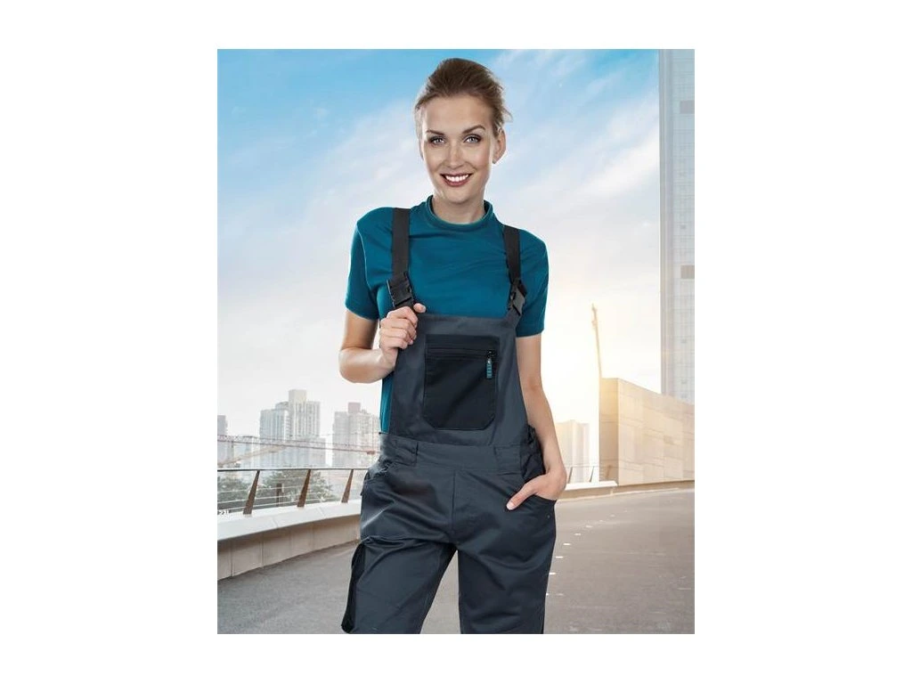 Dámské kalhoty s laclem z kolekce 4TECH respektují specifika ženské postavy i požadavky na pohodlné pracovní kalhoty. Odpovídají normám pro OOP, navíc splňují požadavky na zdravotní nezávadnost. Důkazem je certifikace OEKO TEXTIL.