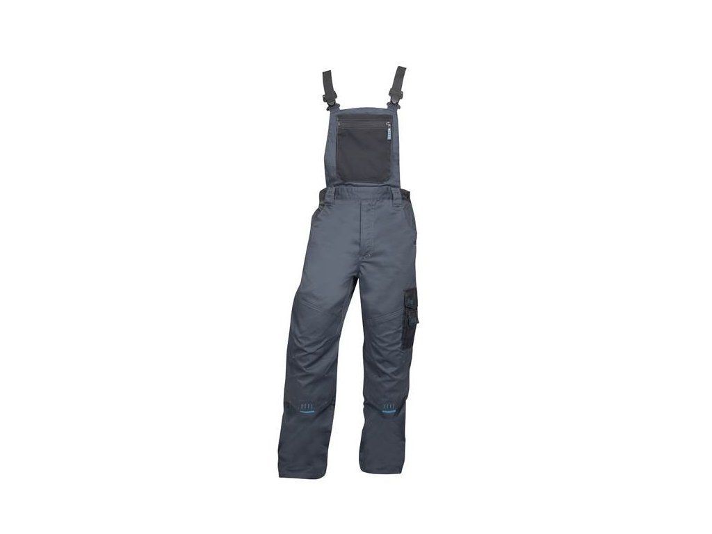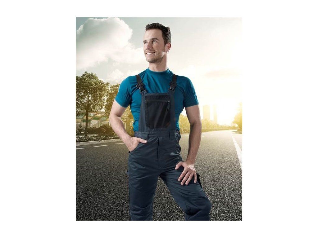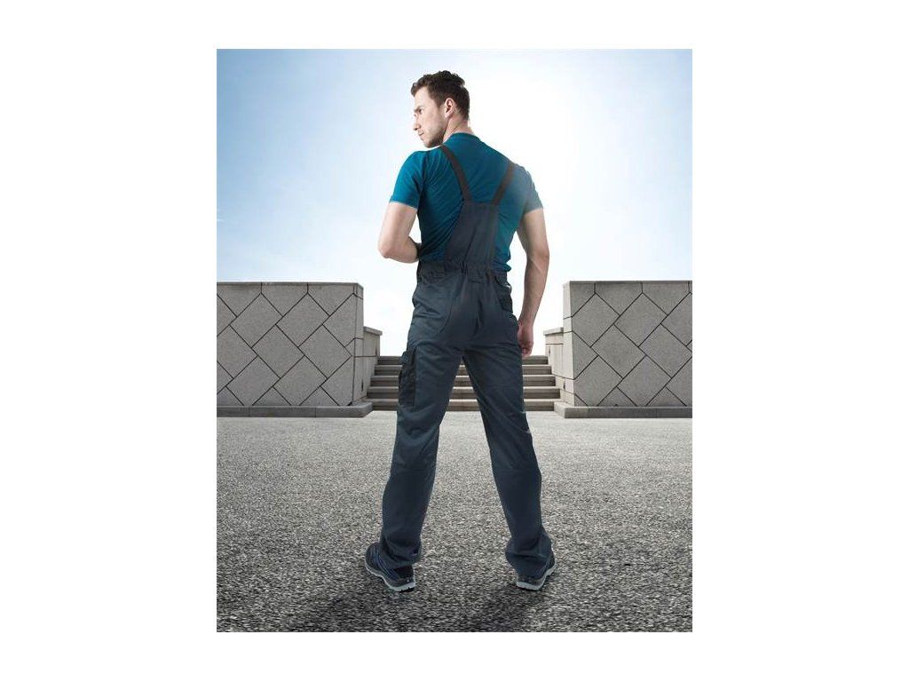 Na laclu se nachází multifunkční kapsa, do které si můžete uložit nezbytnosti jako klíče nebo mobilní telefon. Další praktické kapsy se nacházejí na levém boku a zadní části kalhot. Pokud pracujete vkleče, oceníte kapsy pro vkládání nákoleníků, které zabezpečí kalhotám delší životnost. Pro usnadnění pohybu nechybí kvalitní elastické šle. Kalhoty mají v pasu pro větší pohodlí našitou gumu a zapínají se pomocí kšand zakončených plastovými přezkami.