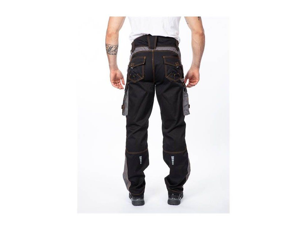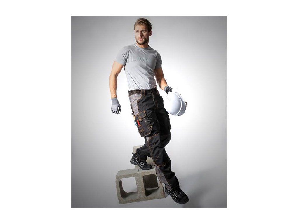 Výrobce neopomněl ani bezpečnost pracovníka, a proto jsou kalhoty prošívané kontrastní riflovou nití a doplněny originálními stříbrnými reflexními potisky.