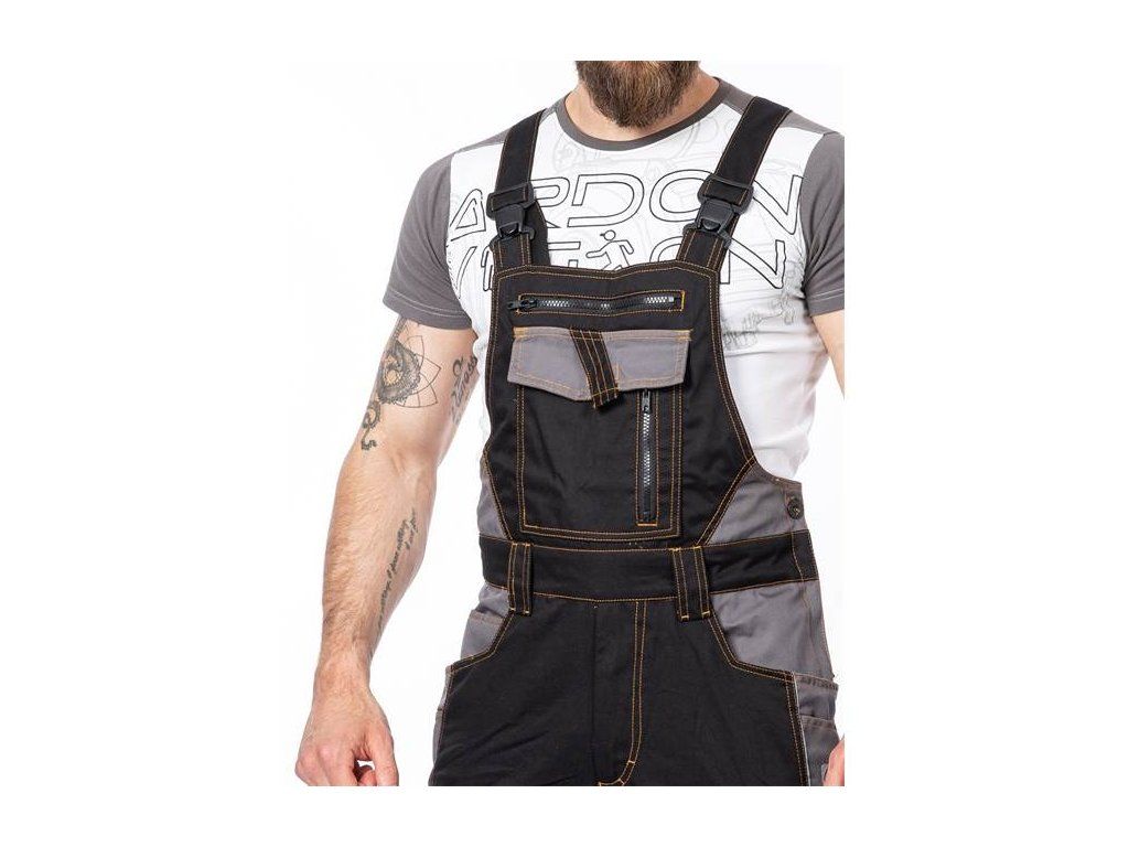 Tyto montérkové kalhoty s laclem z produktové řady VISION jsou ideální kombinací příznivé ceny a kvalitního zpracování a použitých materiálů. Montérky, které jsou na první pohled zpracovány ve sportovním stylu běžných jeansů, jsou vyrobeny ze směsi bavlny, polyesteru a odolného kepru, používaného běžně na zátěžové pracovní oděvy a uniformy.