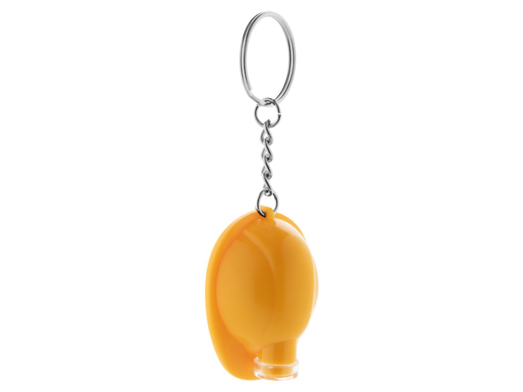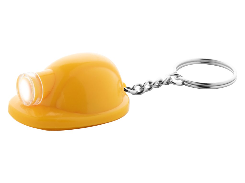 Plastový přívěšek na klíče ve tvaru přilby s LED svítilnou. S knoflíkovou baterií.