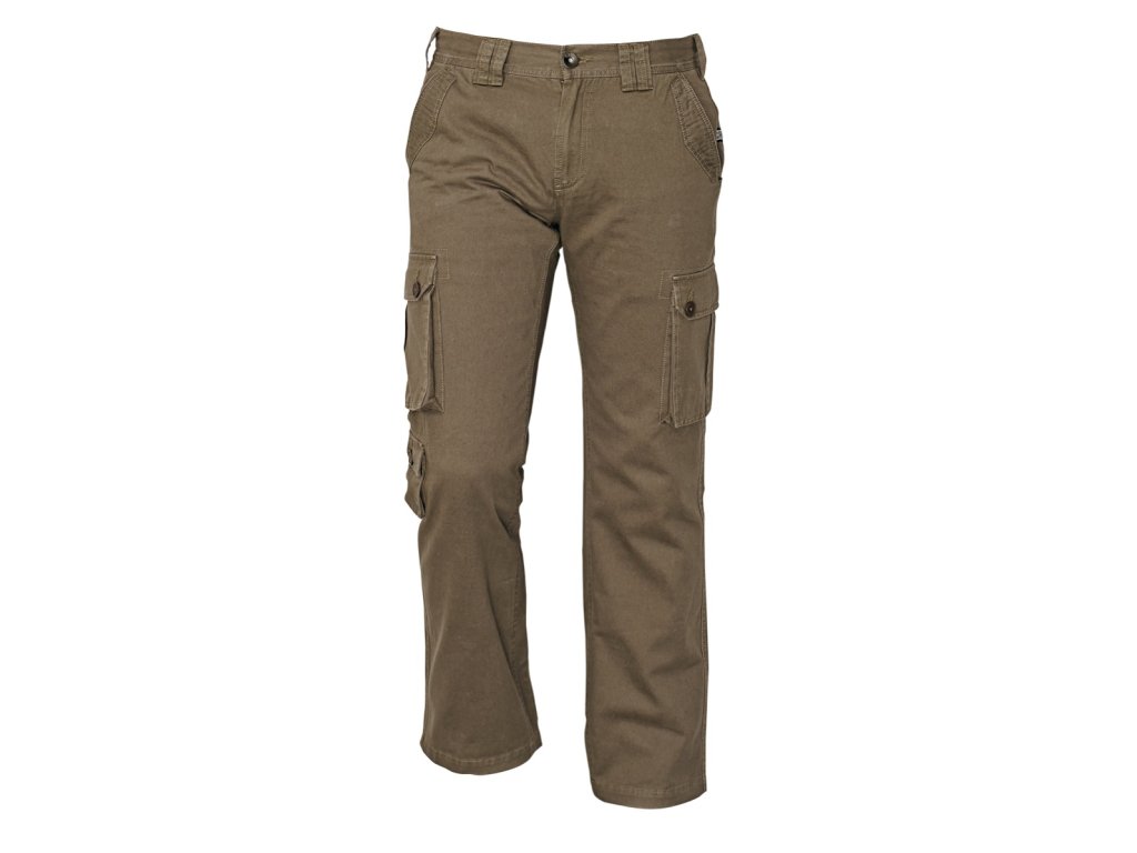 pánské bavlněné kalhoty pro volný čas a outdoorové aktivity; moderní střih s propracovanými detaily; 2 přední kapsy, 2 stehenní kapsy s klopou; 1 malá kolenní kapsa, 2 zadní kapsy.