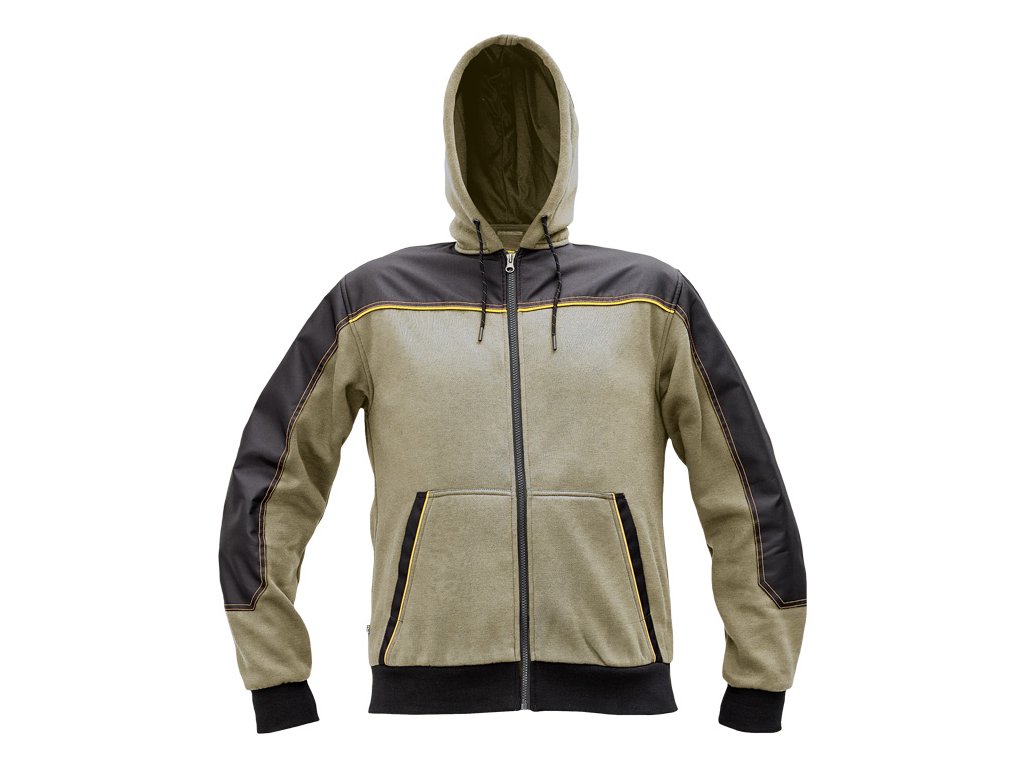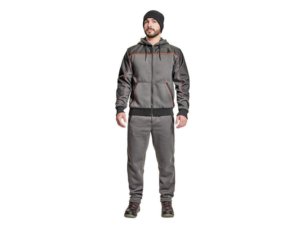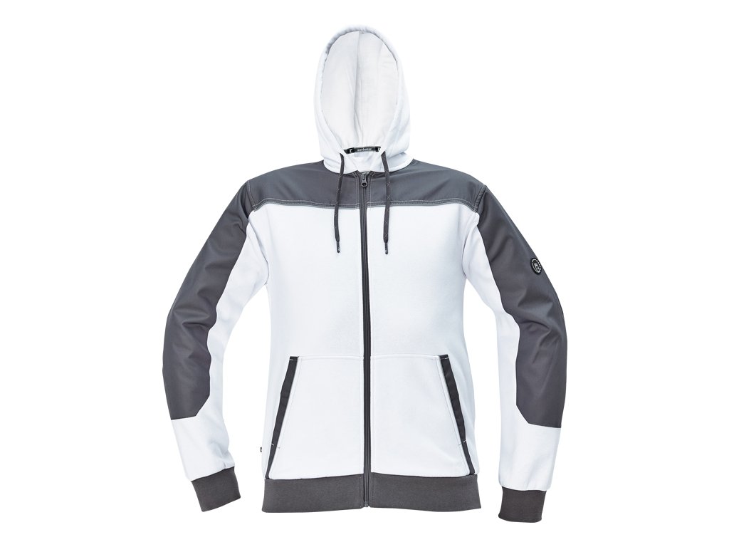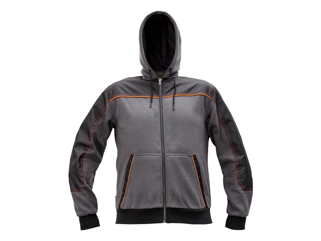 pánská celopropínací mikina na zip s kapucí; zesílená oblast ramen a loktů z materiálu Oxford; 2 přední klokaní kapsy; kontrastní paspulky; elastické žebrované náplety na rukávech a spodním obvodu; poutka na přichycení do Cremorne zimní bundy.