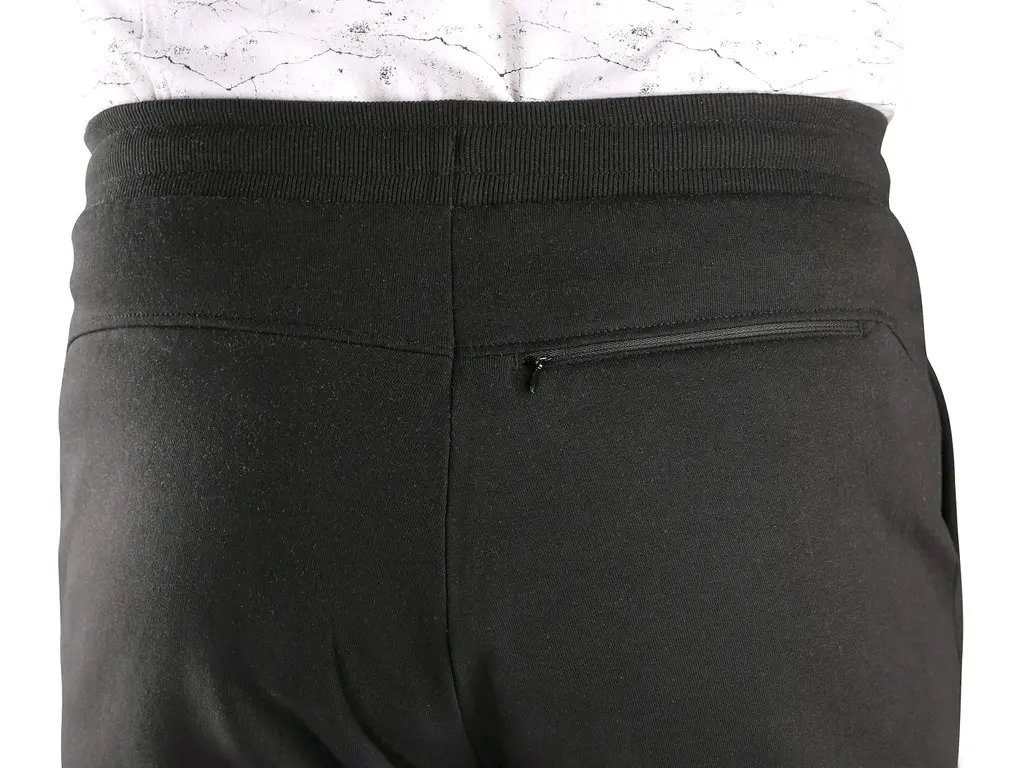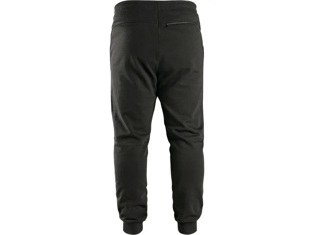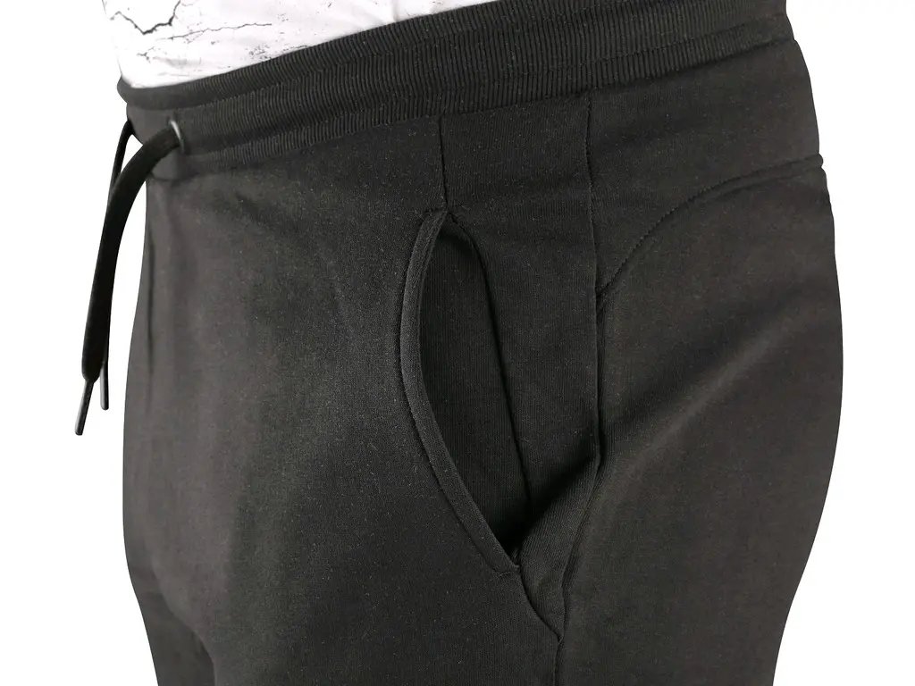 Pánské tepláky, pas a nohavice z žebrové pruženky, 2 přední kapsy na zip, vnitřní strana z fleecu.