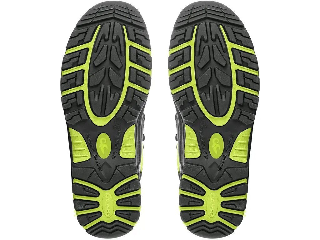 Bezpečnostní polobotka, kožená, s plastovou špicí a planžetou Dyna-Flex®, reflexní doplňky. Materiál: svršek z 1,6 - 1,8 mm štípenkové nubukové kůže (z jednoho dílu), vnější TPU ochrana paty, bez kovových součástí, podšívka z prodyšné oděru odolné textilie, podešev: PU-guma, olejivzdorná, antistatická, protiskluzová, odolná proti propichu a kontaktnímu teplu do 300 °C.