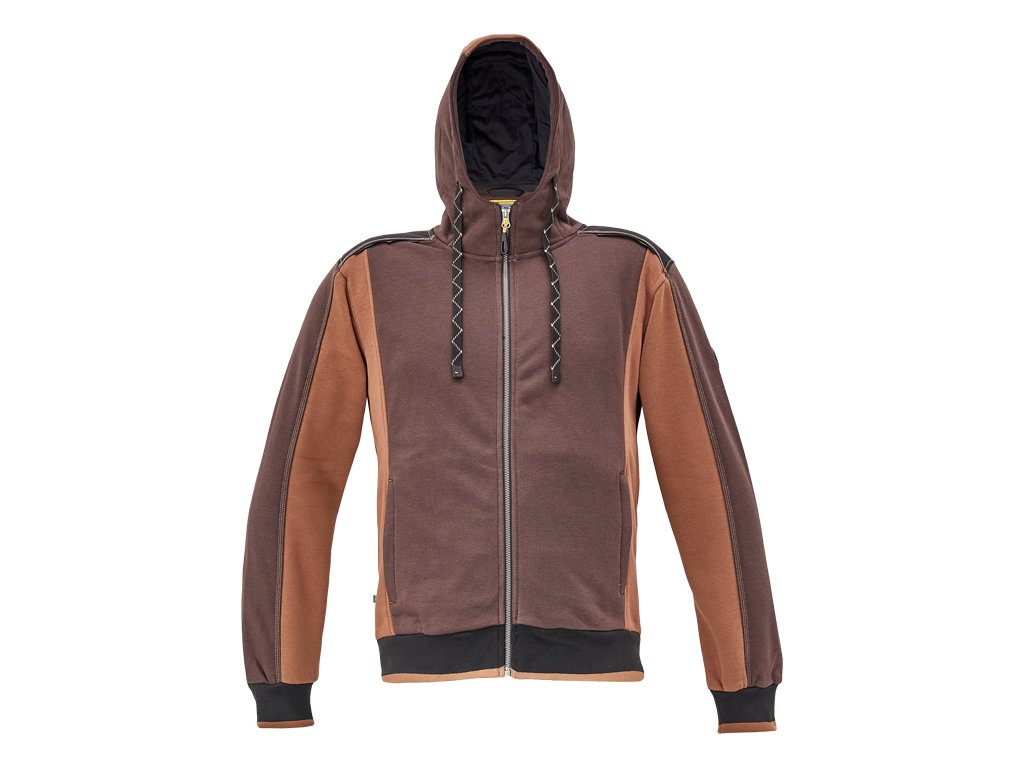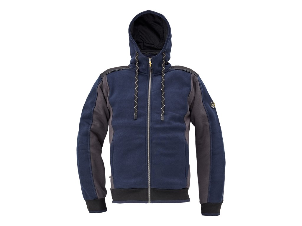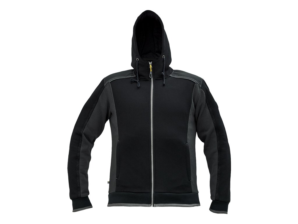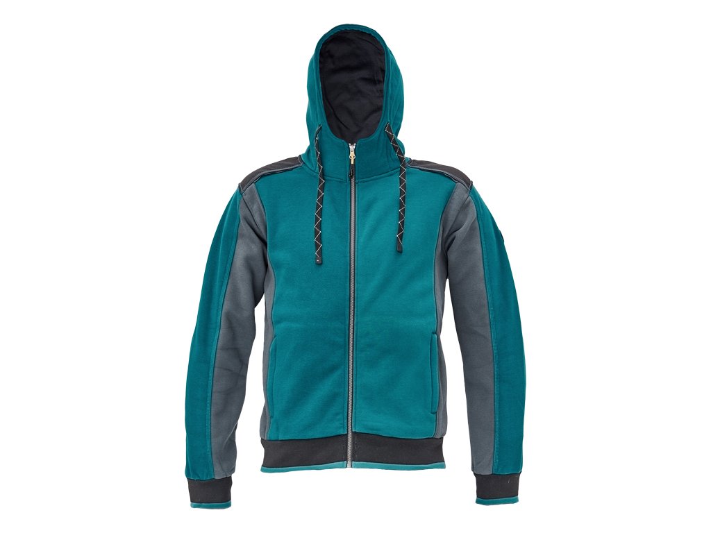 pánská celopropínací mikina s kapucí; zesílená oblast ramen z materiálu Oxford 600D; 2 boční kapsy, elastické žebrové náplety na rukávech a spodním obvodu; reflexní prvky v barevném odstínu.