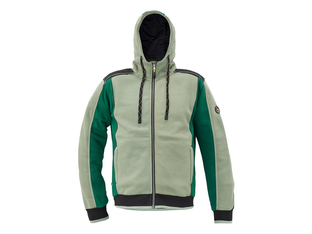 pánská celopropínací mikina s kapucí; zesílená oblast ramen z materiálu Oxford 600D; 2 boční kapsy, elastické žebrové náplety na rukávech a spodním obvodu; reflexní prvky v barevném odstínu.