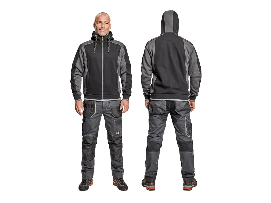 pánská celopropínací mikina s kapucí; zesílená oblast ramen z materiálu Oxford 600D; 2 boční kapsy, elastické žebrové náplety na rukávech a spodním obvodu; reflexní prvky v barevném odstínu.