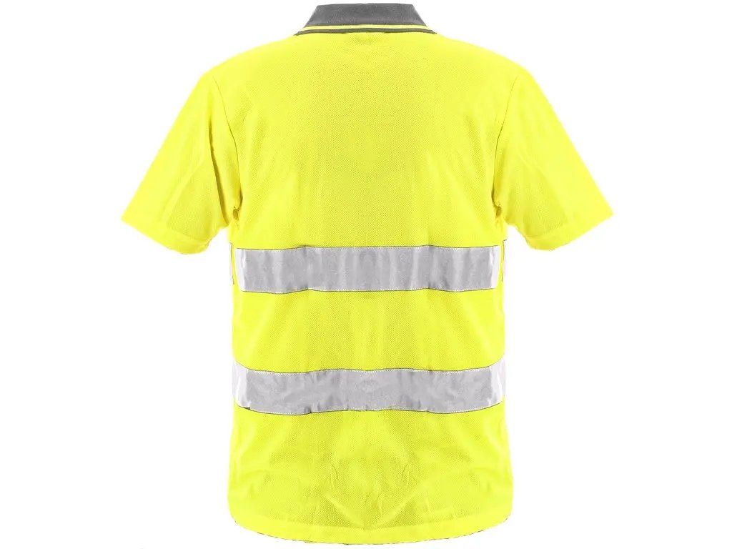 Výstražné tričko s límečkem, reflexní pruhy, s Wicking Finish úpravou pro rychlé a rovnoměrné schnutí.