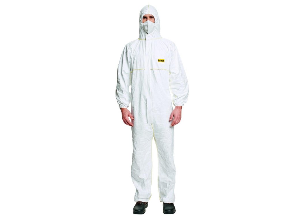 TYPICKÉ OBLASTI POUŽITÍ: Ochranný oblek CERVA, model DuPont CHF5CB je určen k ochraně pracovníků před nebezpečnými látkami, nebo k ochraně citlivých produktů před kontaminací člověkem, v závislosti na chemické toxicitě a podmínkách expozice. K ochraně proti částicím (typ 5) a omezekapalnému postřiku (typ 6). Materiál: 100% netkaná PE textilie DuPont