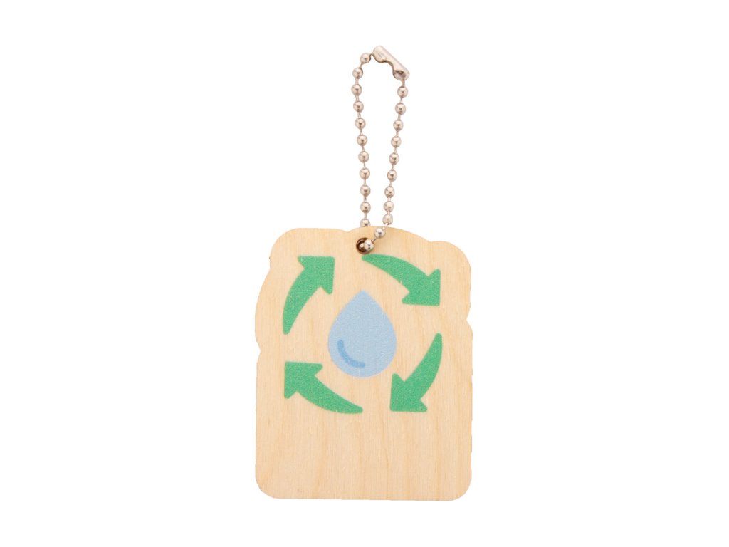 Přívěsek na klíče z březové překližky s kovovým řetízkem a motivem ochrany životního prostředí. ...