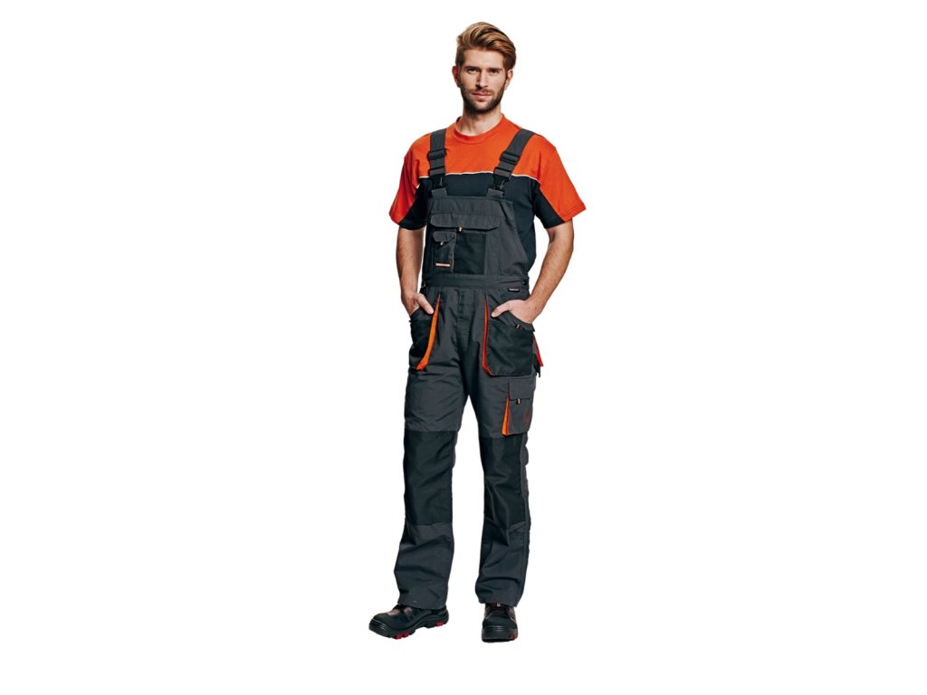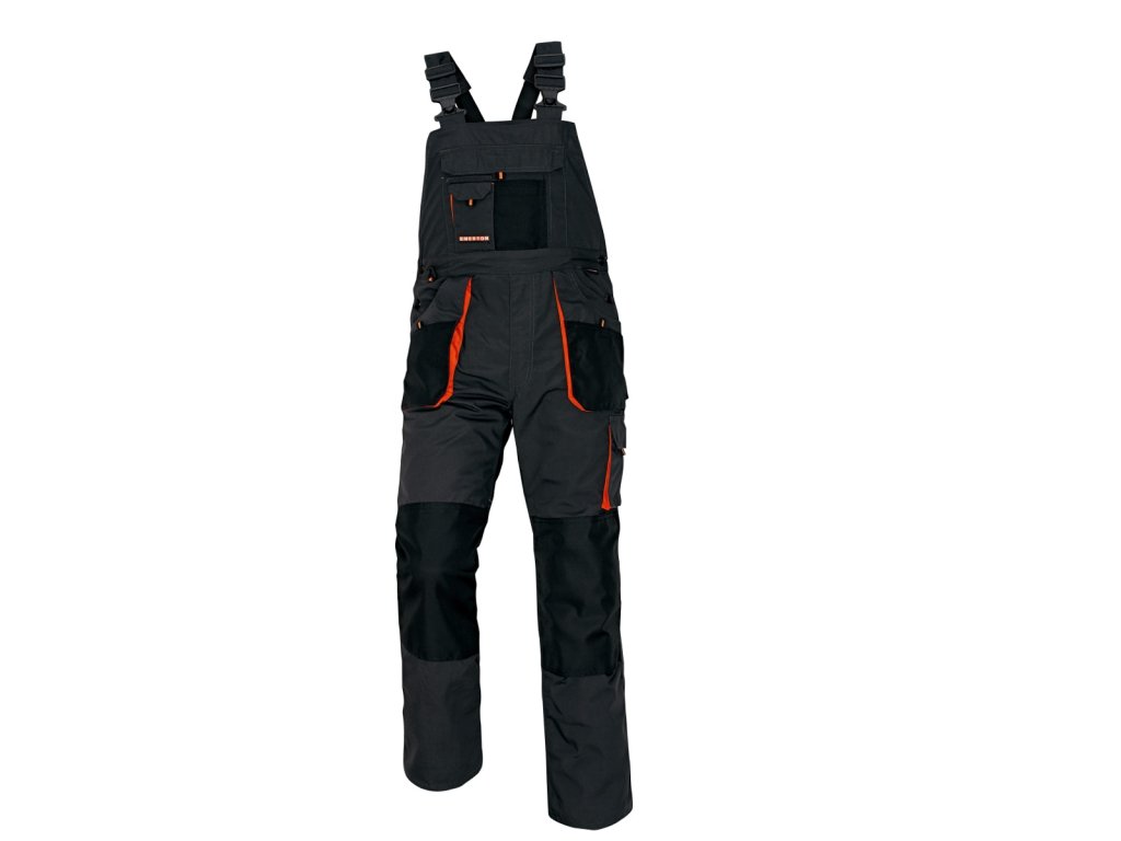 pánské pracovní kalhoty s laclem, vysoká odolnost; multifunkční kapsy; Oxford 600D zesílení kolenních kapes pro vkládání ochranných nákoleníků.