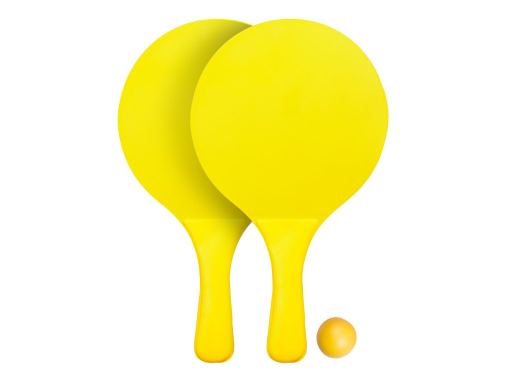 Plážový tenis s barevnými raketami a jedním míčkem, vyrobeno ze dřeva a plastu. ...
