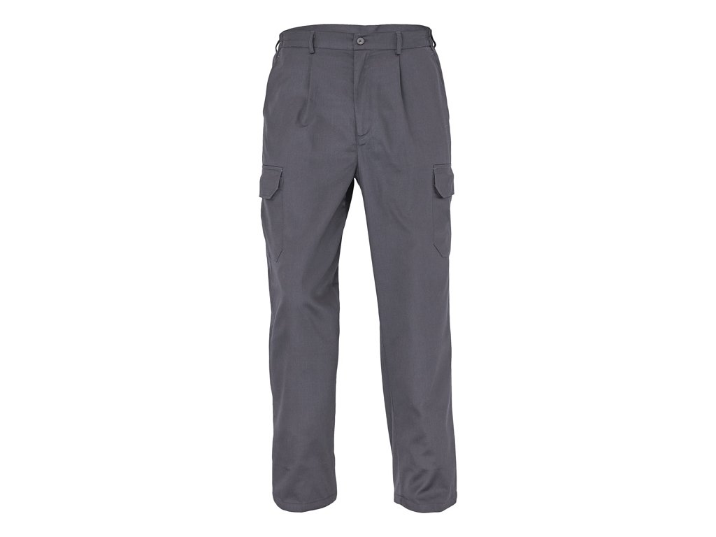 pánské pracovní kalhoty s pružným pasem; 2 postranní kapsy; 2 stehenní kapsy s klopou na suchý zip; 1 zadní kapsa na suchý zip; nastavitelná délka nohavic.