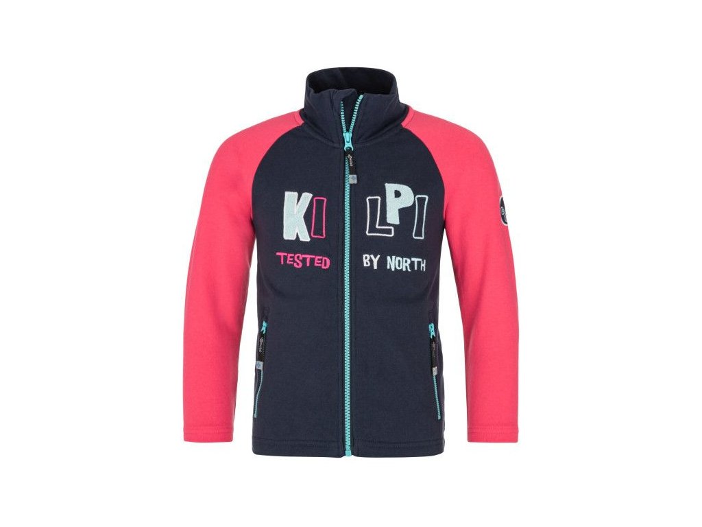 Dívčí celorozepínací bavlněná mikina Kilpi FLEEDY-JG s vysokým límečkem a dvěma zipovými kapsami. Pohodlný měkký materiál, který zahřeje při cestách, ve škole nebo na výletech.