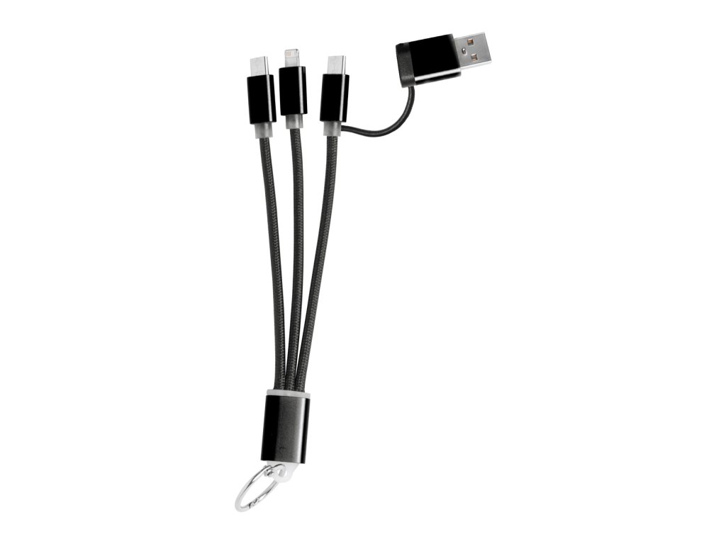 Hliníkový USB nabíjecí kabel s přívěškem na klíče. S konektory micro USB, USB-C a Lightning. Se vstupy USB a USB-C. ...