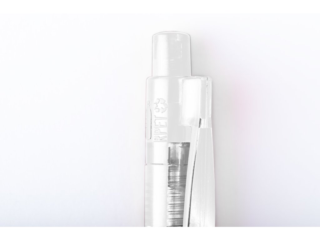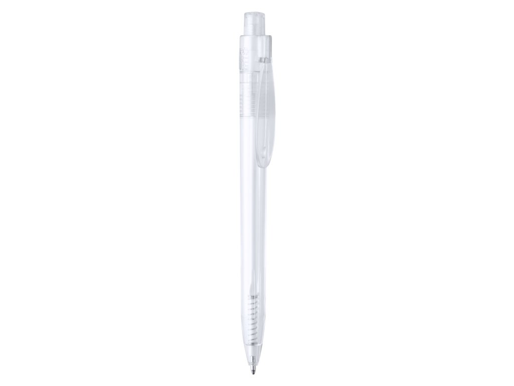 Průhledné plastové kuličkové pero RPET. S modrou náplní.