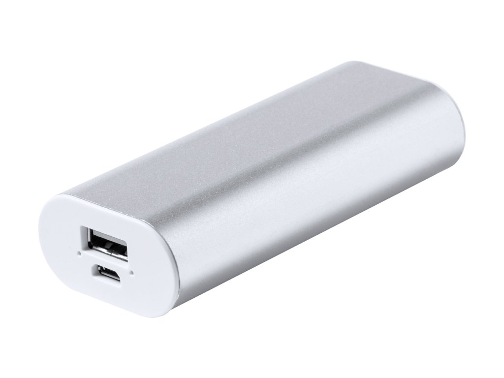 Hliníková power banka s 2200 mAh baterií. S portem USB nabíječky a vstupním portem micro USB. Včetně USB nabíjecího kabelu.