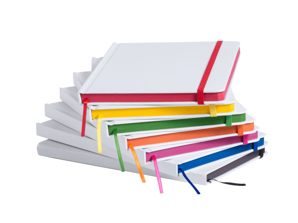 Blok se 100 čistými listy v papírových deskách a barevnou gumičkou, A5. ...