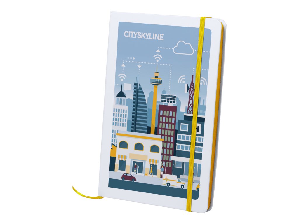 Blok se 100 čistými listy v papírových deskách a barevnou gumičkou, A5.