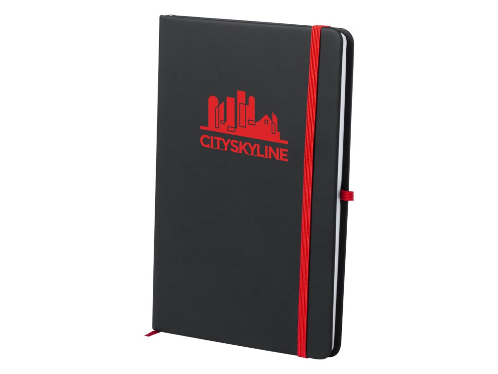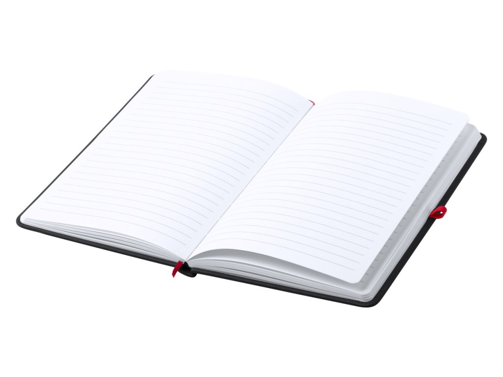 Blok s deskami z PU kůže se 100 linkovanými listy, barevnou záložkou a gumičkou. Se speciální povrchovou úpravou pro laser. ...