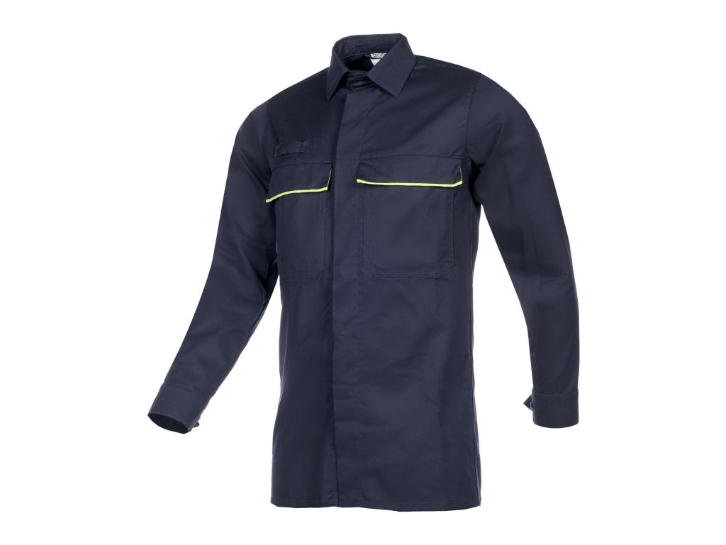 pánská košile s ochranou proti tepelnému účinku elektrického oblouku; antistatická; zapínání na druky pod krycí légou; lehký a prodyšný materiál s výbornou regulací odvodu vlhkosti; 2 náprsní kapsy s klopou, zapínáním na druky a kontrastním lemováním; spodní obvod rukávů nastavitelný pomocí druků.