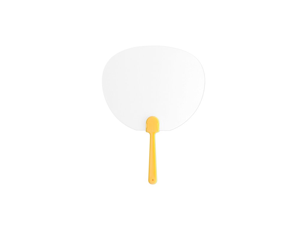 Plastový oválný vějíř s rukojetí.
