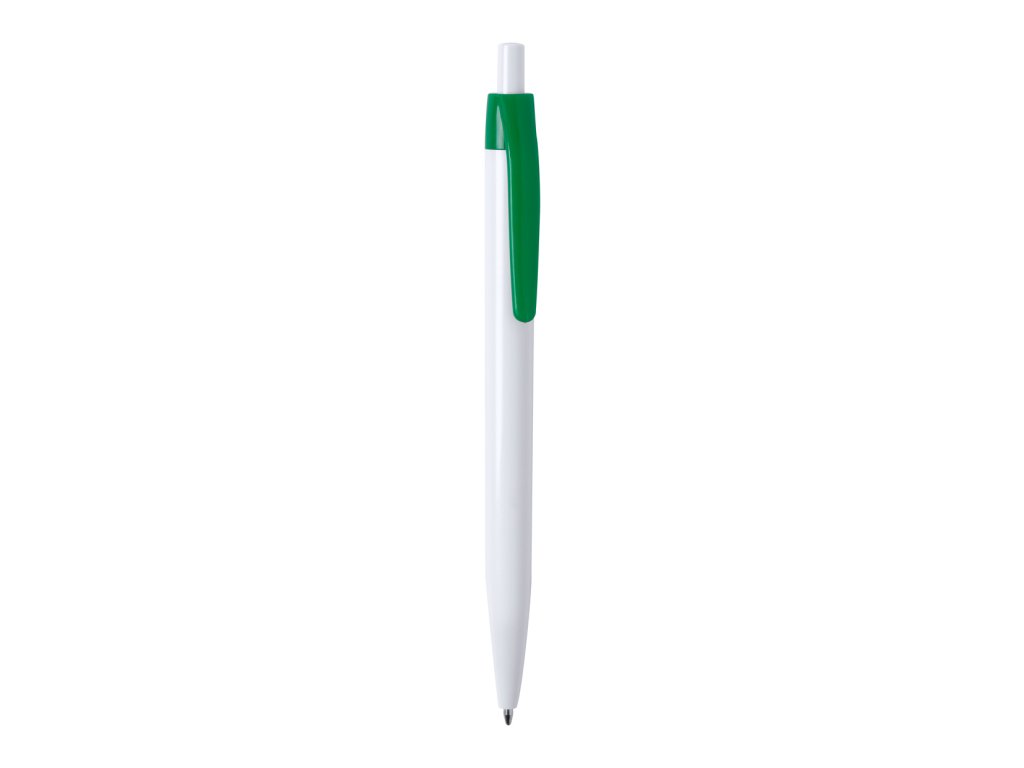 Plastové kuličkové pero s bílým tělem a barevným klipem. Dodává se s modrou náplní. ...