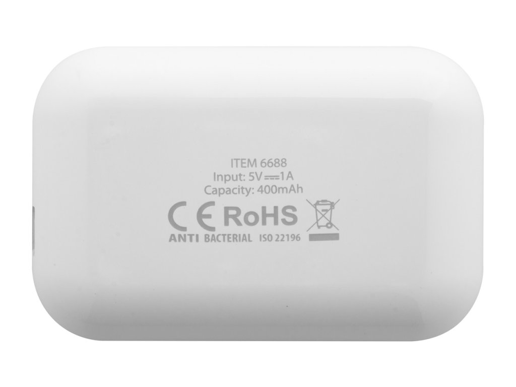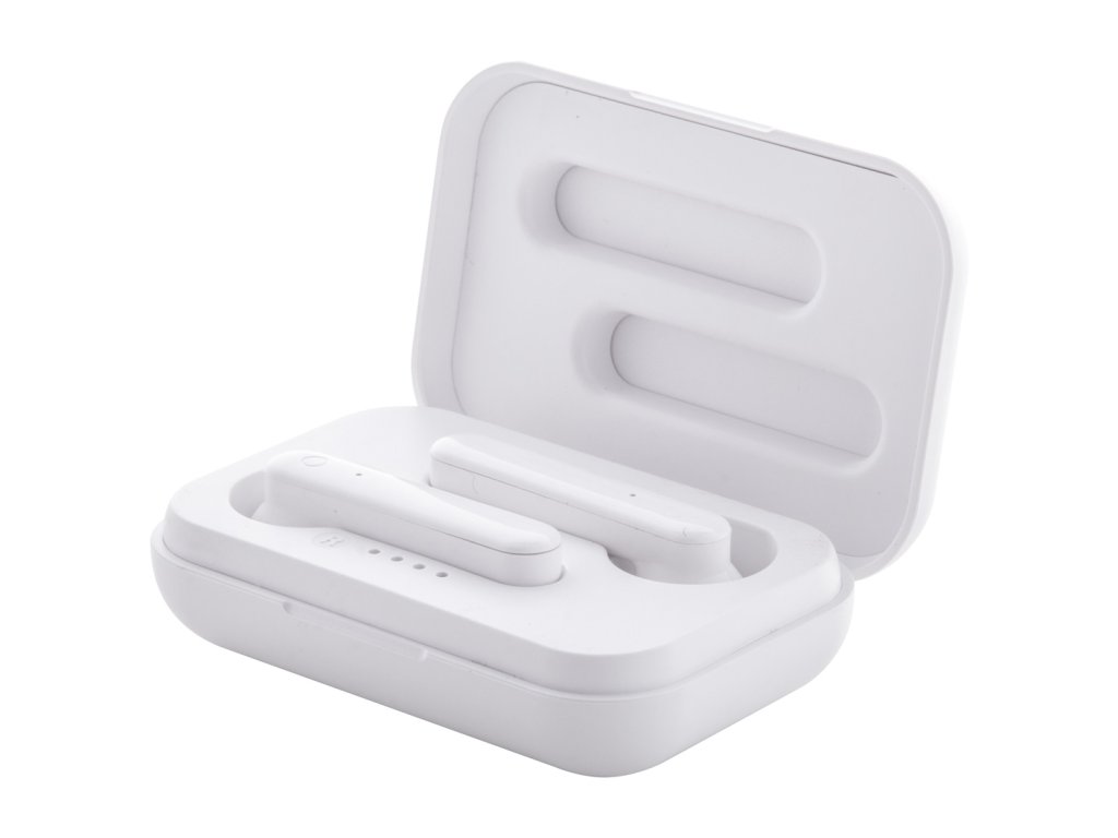 Antibakteriální bezdrátová sluchátka Bluetooth s funkcí hands-free volání v plastové nabíječce. V souladu s ISO 22196. Včetně nabíjecího kabelu USB. ...