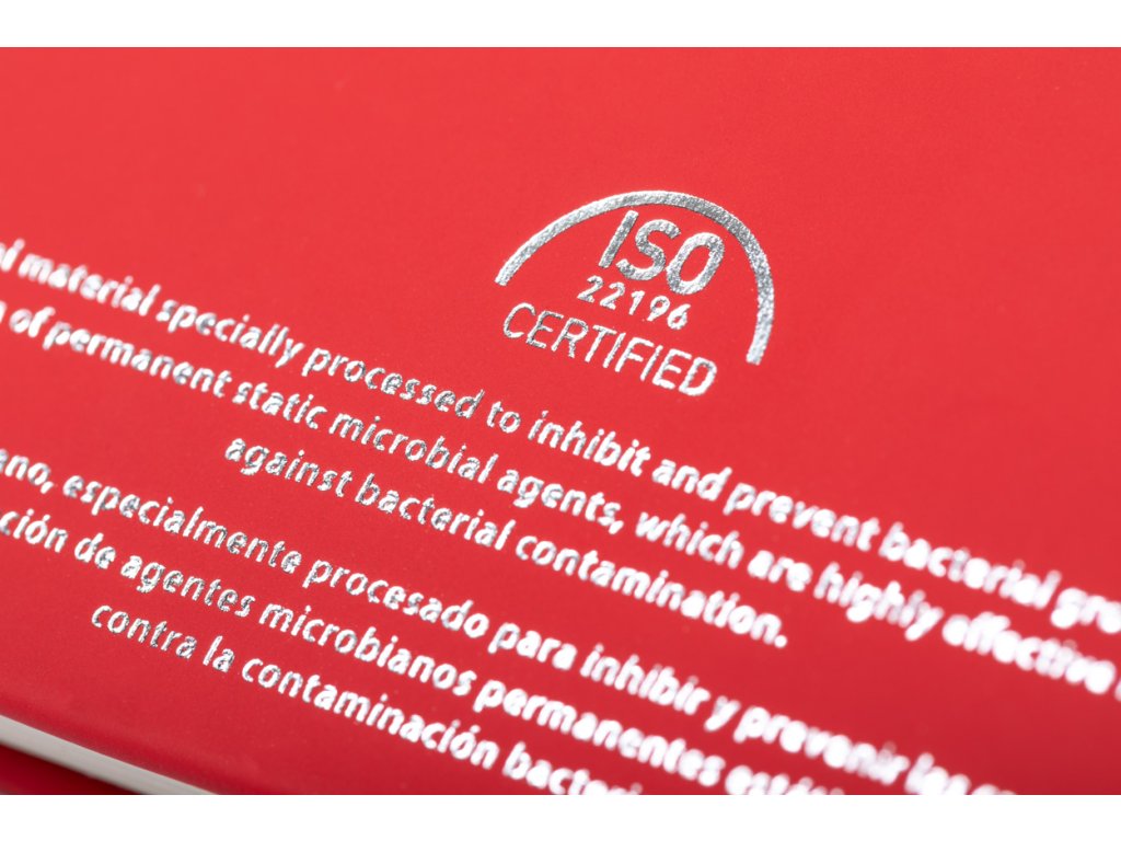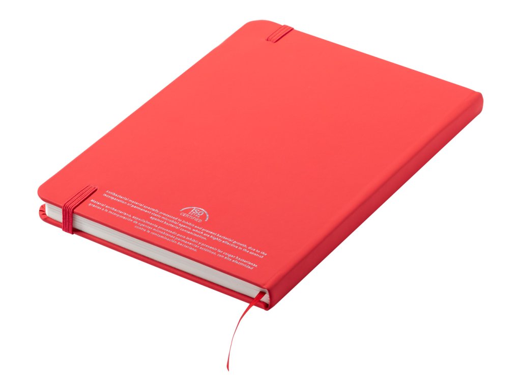 Antibakteriální blok A5 s deskami z PU kůže, se záložkou a gumičkou a 100 čistými listy. V souladu s ISO 22196. ...