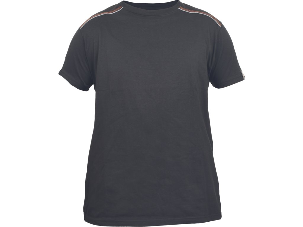 tričko z bavlněného úpletu; sedlo v kontrastní černé barvě lemované reflexní paspulkou; dekorativní prošití k HI-VIS barvách.