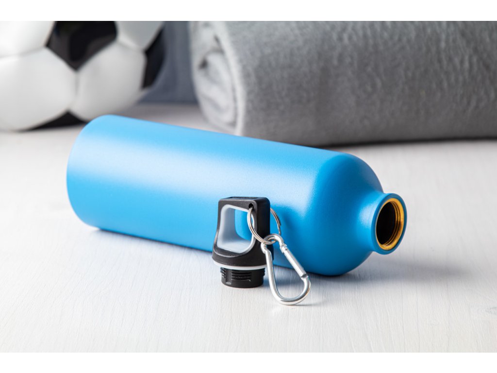 Hliníková sportovní láhev na pití s matným povrchem a karabinkou, 750 ml. Nevhodné pro sycené nápoje.