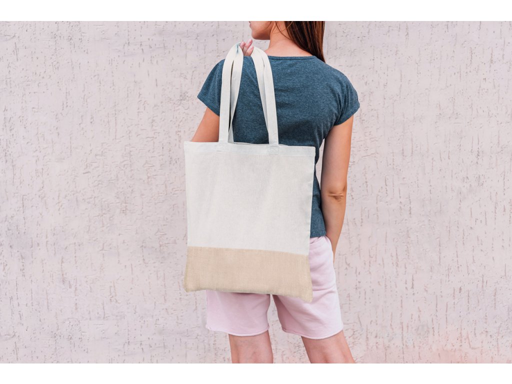 Nákupní taška z juty a bavlny s dlouhými uchy, 120g/m².
