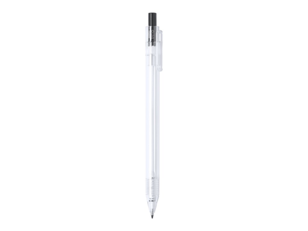 Průhledné plastové kuličkové pero RPET s barevným tlačítkem. S modrou náplní. ...