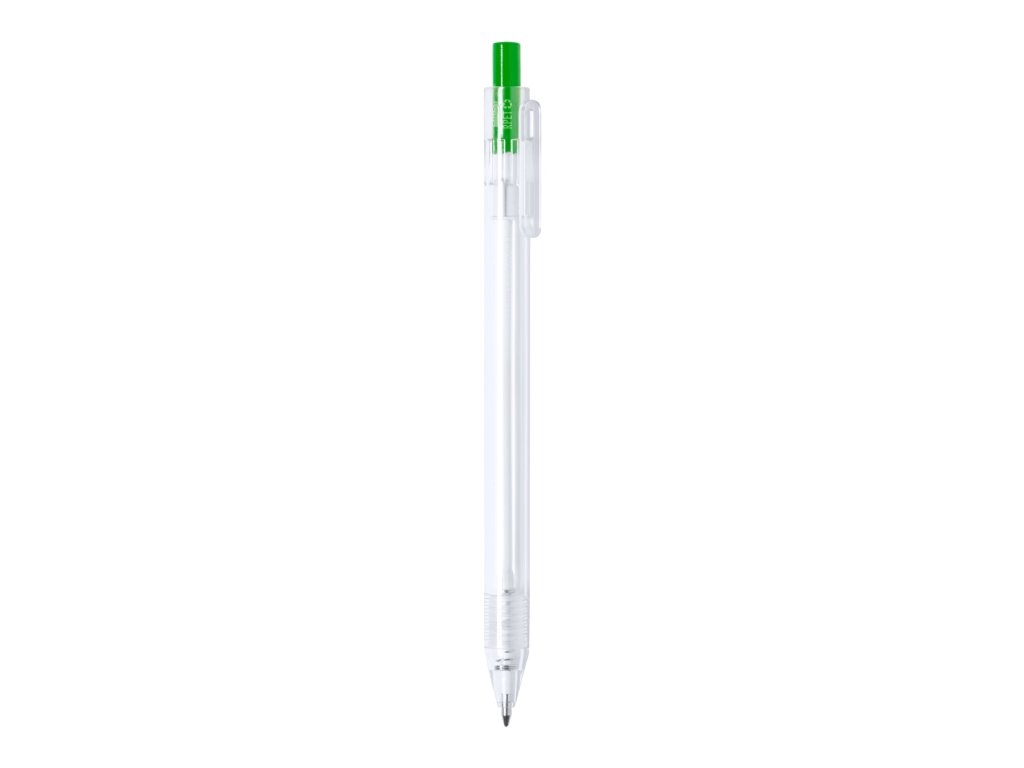 Průhledné plastové kuličkové pero RPET s barevným tlačítkem. S modrou náplní. ...
