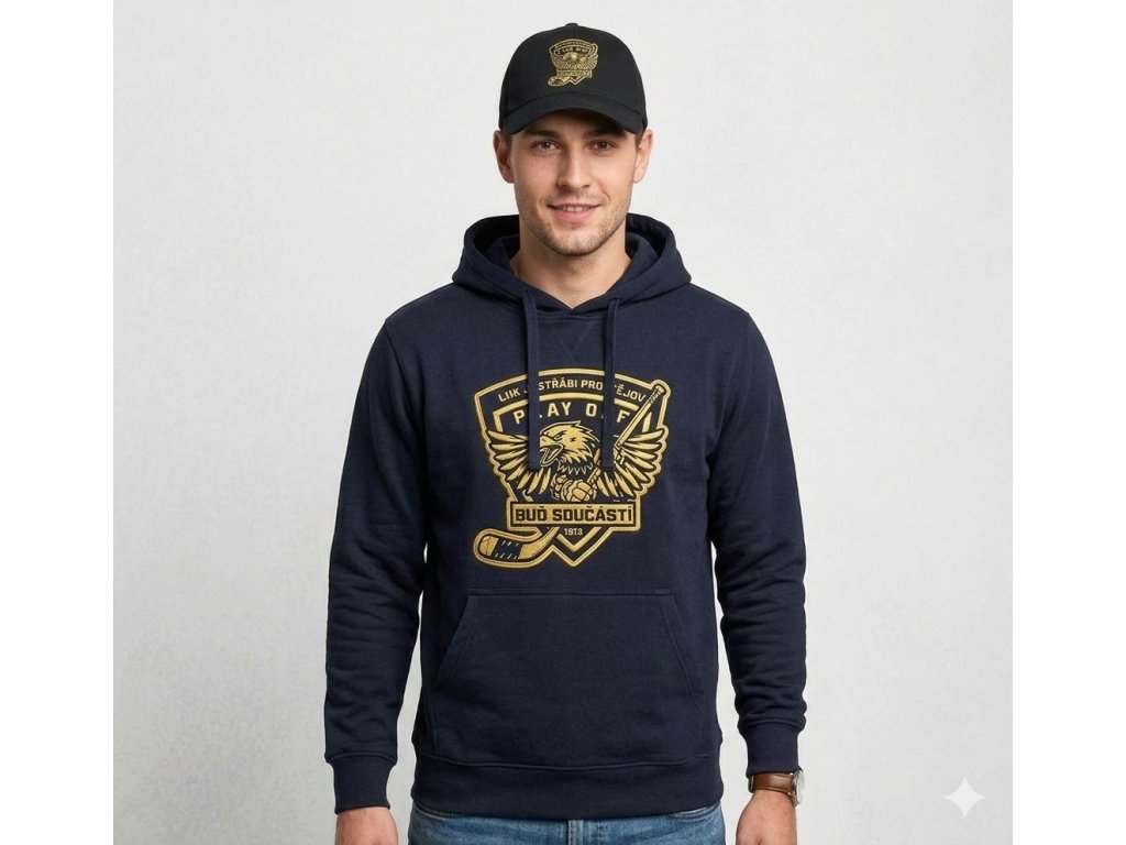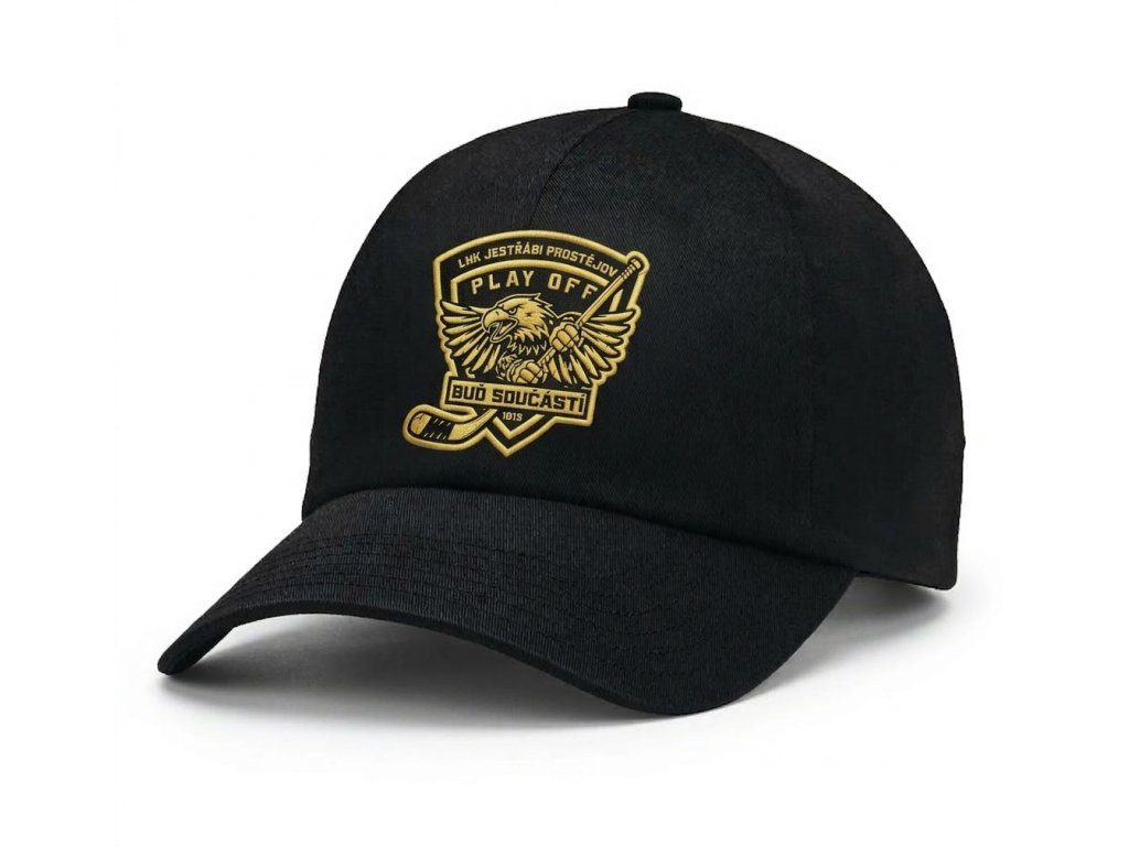 Designová hokejová kšiltovka týmu LHK Jestřábi Prostějov v černém provedení s logem Play Off