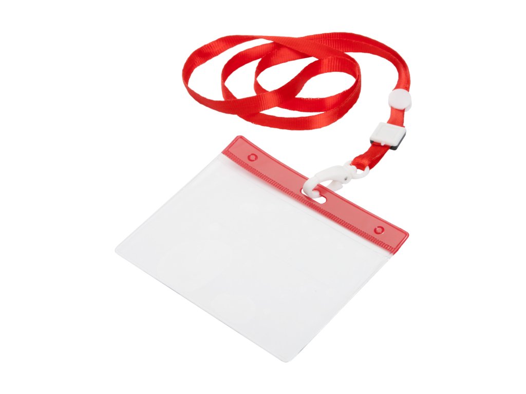 Lanyard s plastovou karabinkou a PVC držákem, polyester.