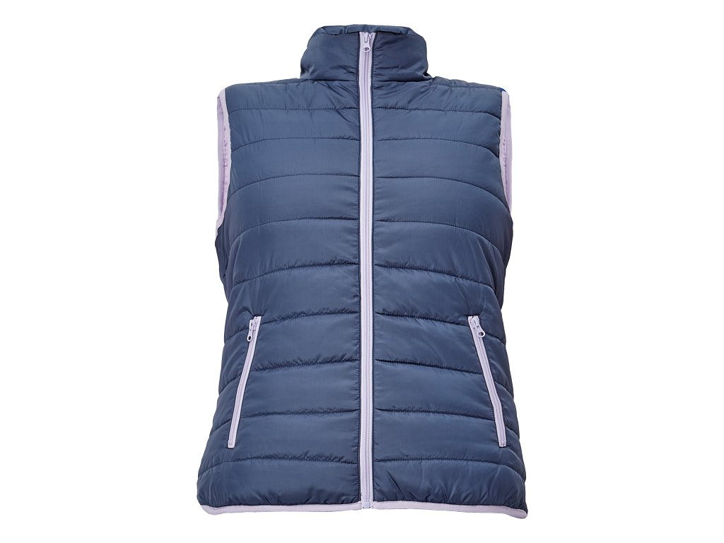 dámská zateplená vesta; elastický pas; zapínání na zip; 2 boční kapsy na zip.