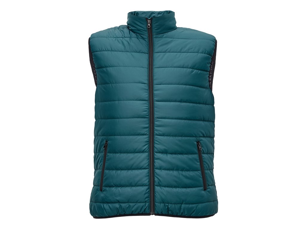 pánská zateplená vesta; elastický pas; zapínání na zip; 2 boční kapsy na zip.