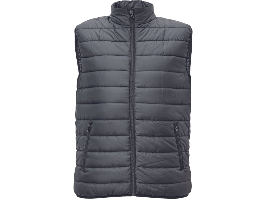pánská zateplená vesta; elastický pas; zapínání na zip; 2 boční kapsy na zip.
