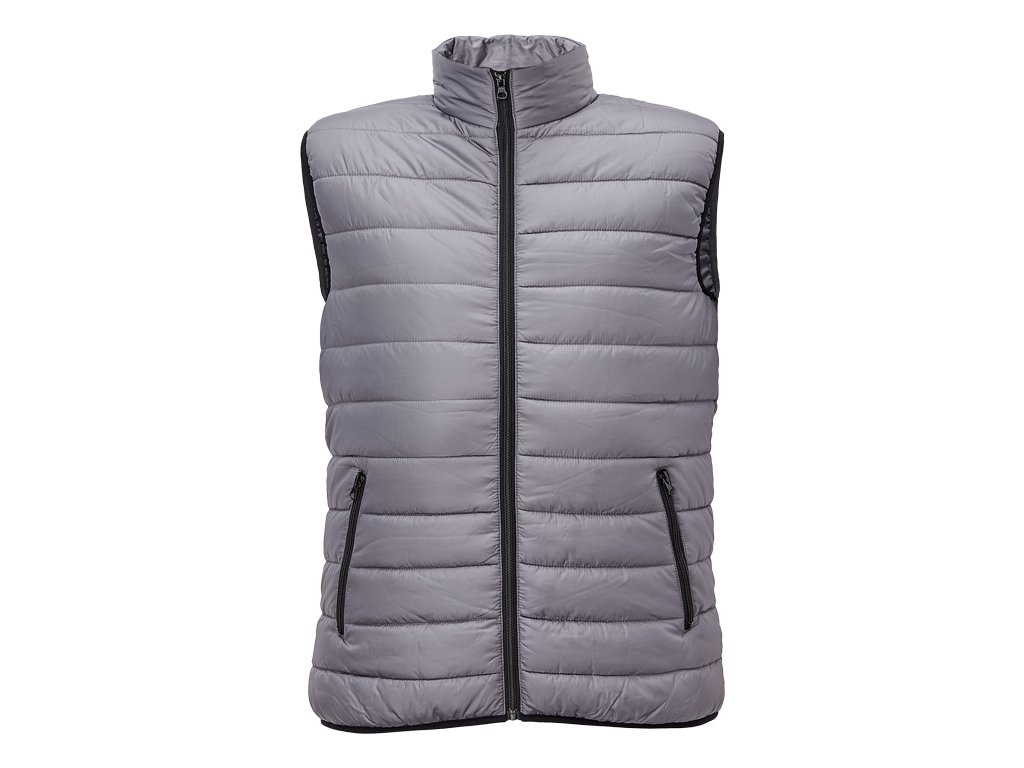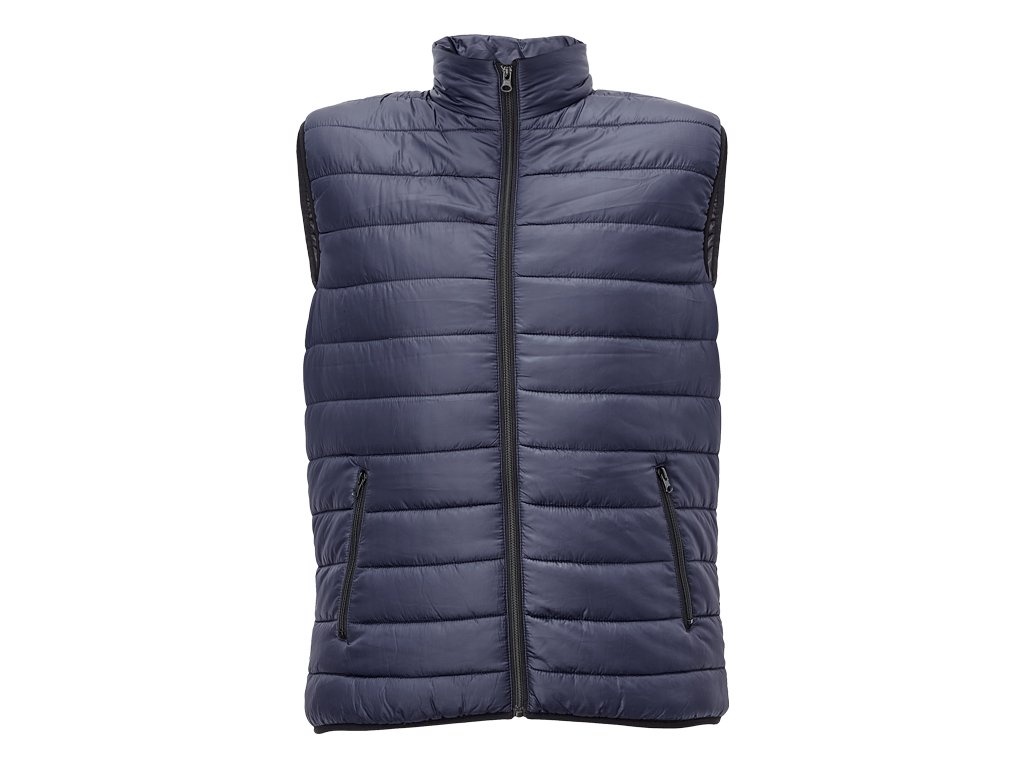 pánská zateplená vesta; elastický pas; zapínání na zip; 2 boční kapsy na zip.