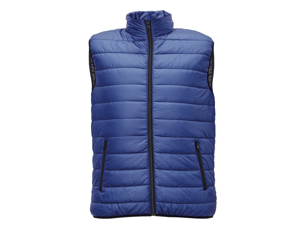 pánská zateplená vesta; elastický pas; zapínání na zip; 2 boční kapsy na zip.