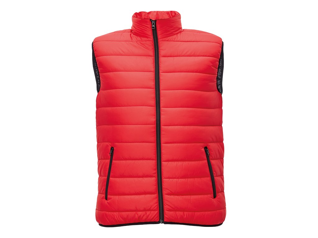 pánská zateplená vesta; elastický pas; zapínání na zip; 2 boční kapsy na zip.
