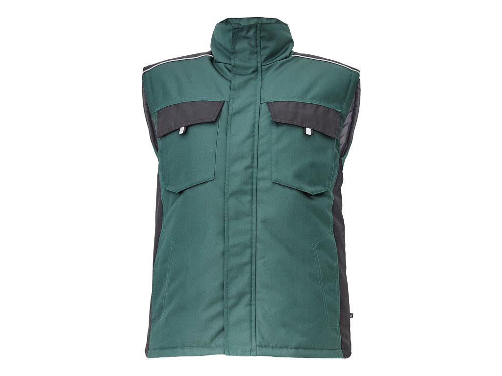 pánská zimní vesta • zapínání na zip kryté légou na suchý zip • 2 boční kapsy, 2 náprsní kapsy na suchý zip • 1 vnitřní kapsa na mobilní telefon • reflexní prvky
