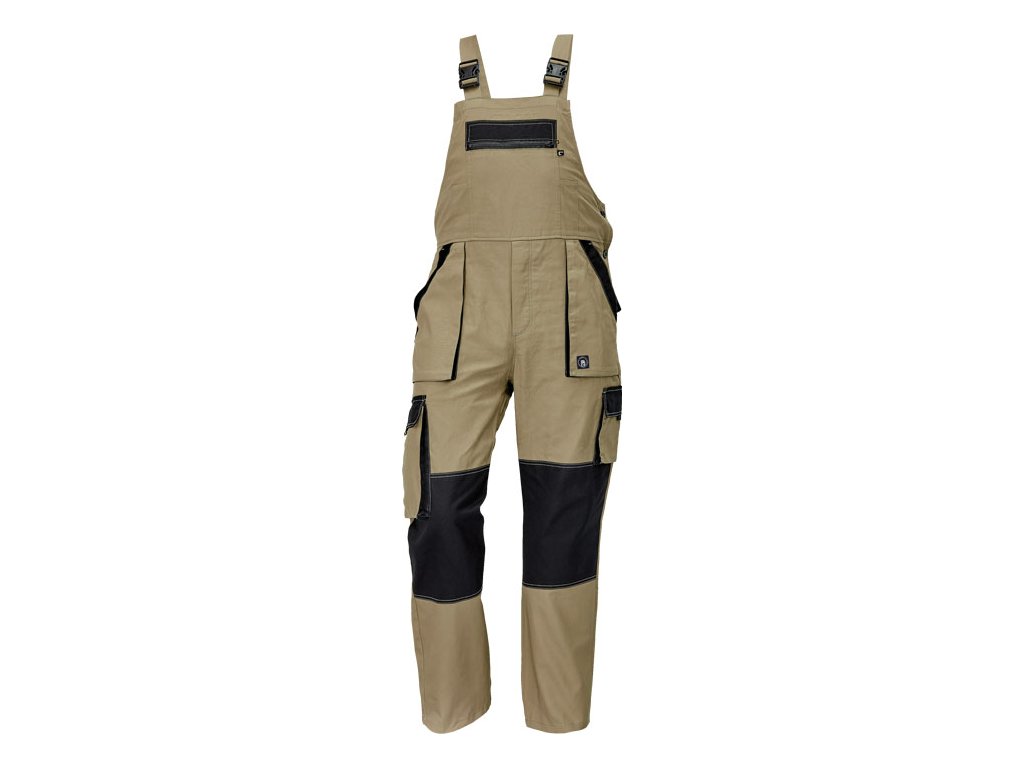 pánské lehké pracovní kalhoty s laclem a elastickým pasem; široké šle s plastovými sponami; 2 přední kapsy, 2 stehenní kapsy; 1 velká náprsní kapsa na zip, 2 zadní kapsy; zesílení nohavic v oblasti kolen; nastavitelná délka nohavic.