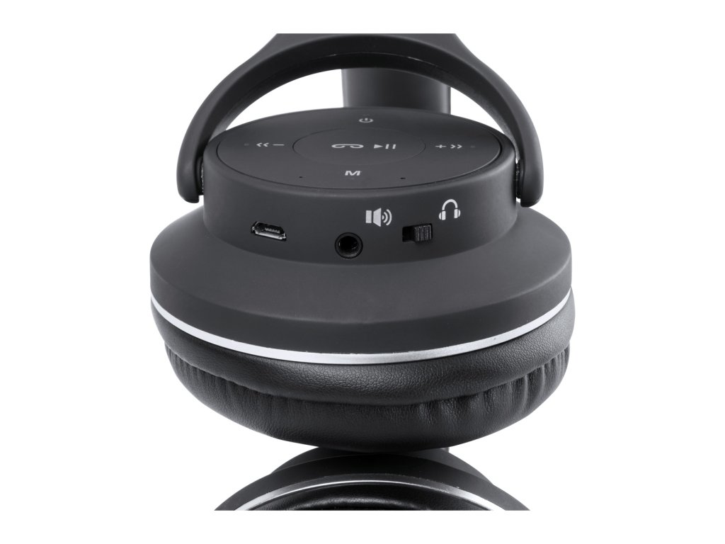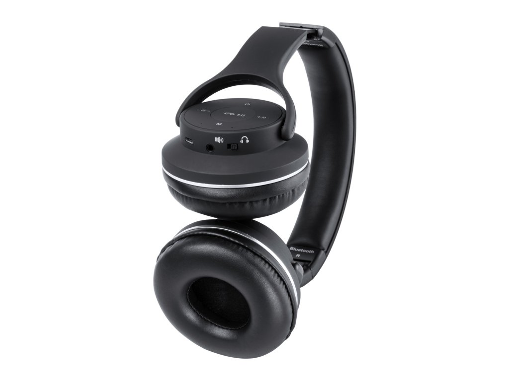Skládací, plastová bluetooth sluchátka s vestavěnou dobíjecí baterií. Se stereo reproduktory, hands-free voláním, FM rádiem a micro SD MP3 přehrávání. Včetně 3,5 mm audio jacku a USB nabíjecích kabelů.