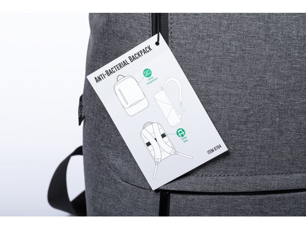 Antibakteriální batoh s polstrovanou přihrádkou na notebook (15 ") a popruhem na vozík. V souladu s normou ISO 20743. ...