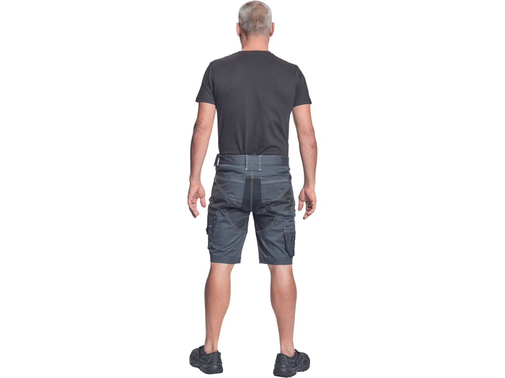 pánské pracovní šortky s pružným pasem; elastický inovativní materiál TRIFIBETEX®; odolné trojité prošití nohavic a sedu; prostorné multifunkční přední kapsy s poutky na nářadí; reflexní prvky v barevném odstínu.