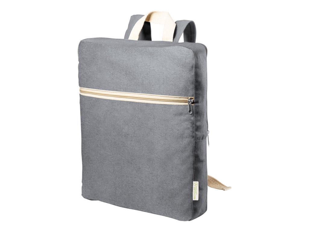 Batoh z recyklované bavlny s přihrádkou na zip a přední kapsou. S výrazným štítkem z recyklované bavlny. 100% recyklovaná bavlna, 275 g/m².