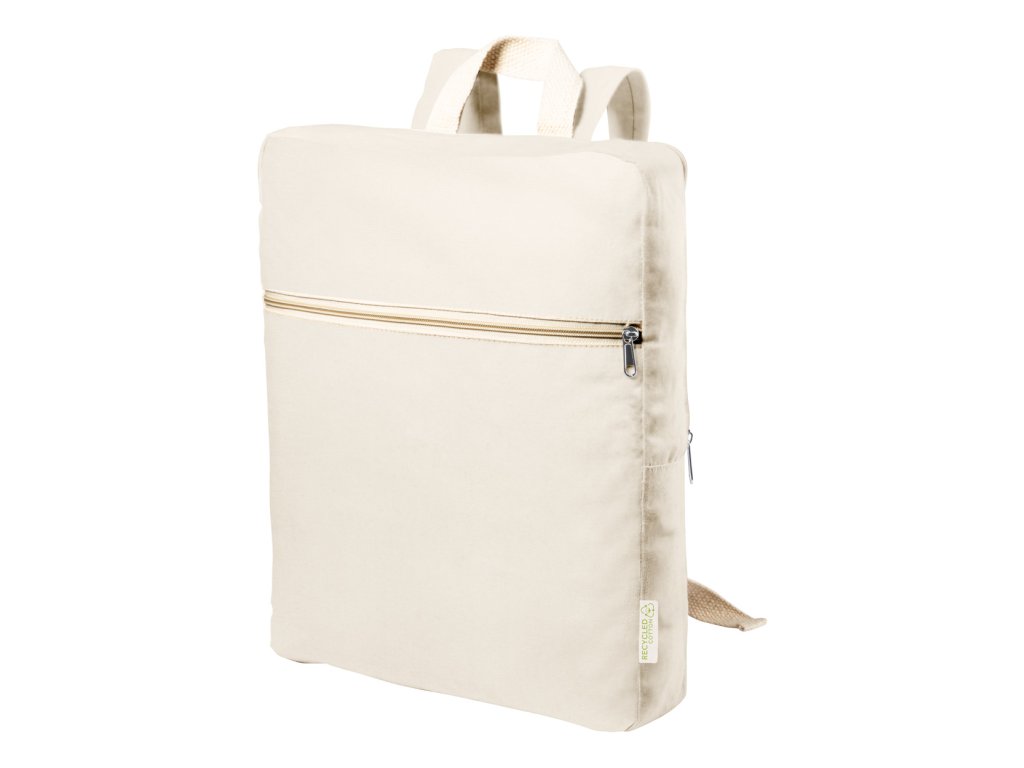 Batoh z recyklované bavlny s přihrádkou na zip a přední kapsou. S výrazným štítkem z recyklované bavlny. 100% recyklovaná bavlna, 275 g/m².